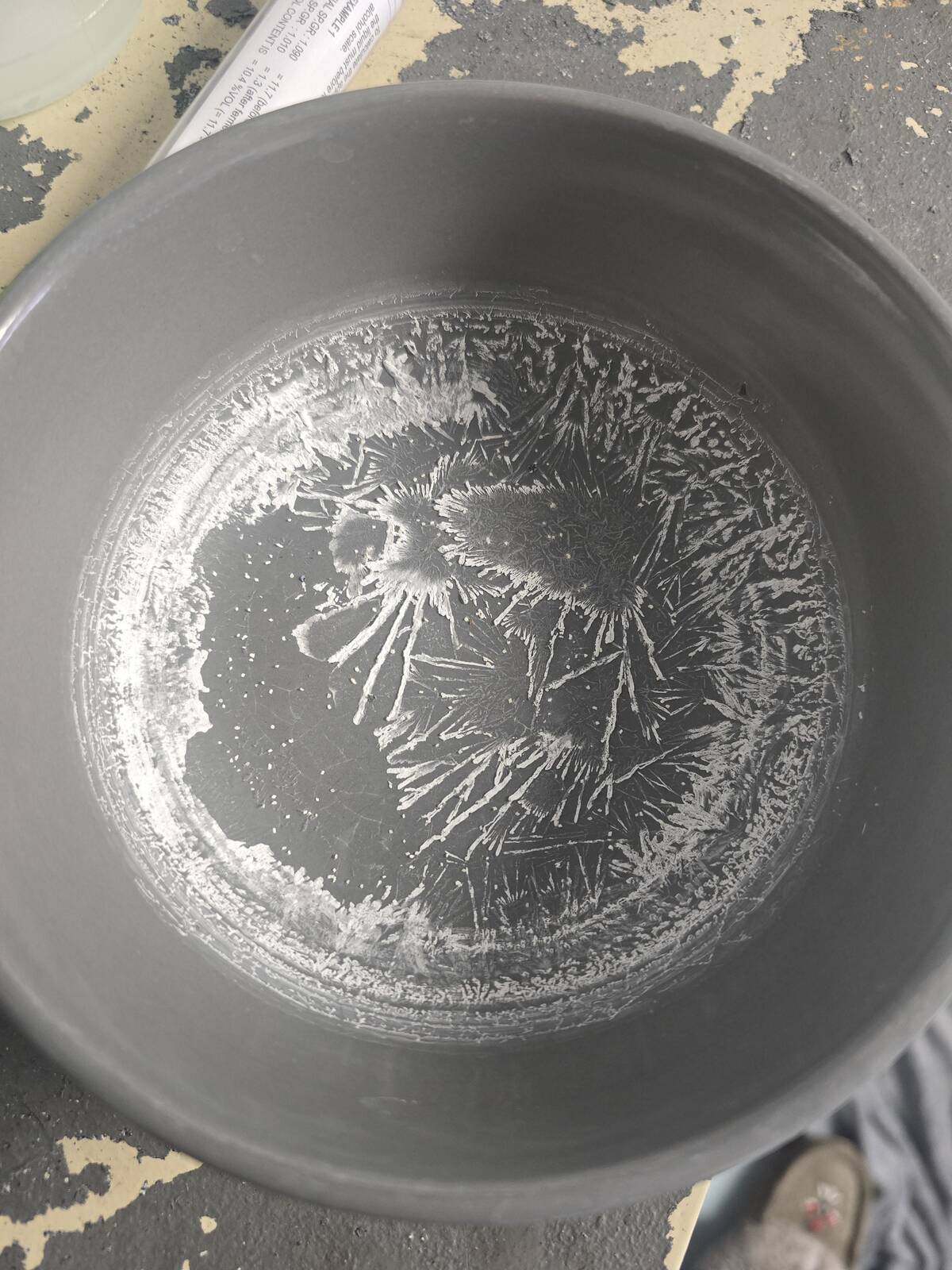 This sanitizer left some serious artwork behind when it dried. Those crystal patterns are surprisingly cool—kind of looks like frost but even weirder. Now I want to leave sanitizer in every container, just to reveal tiny, temporary pieces of science magic.
