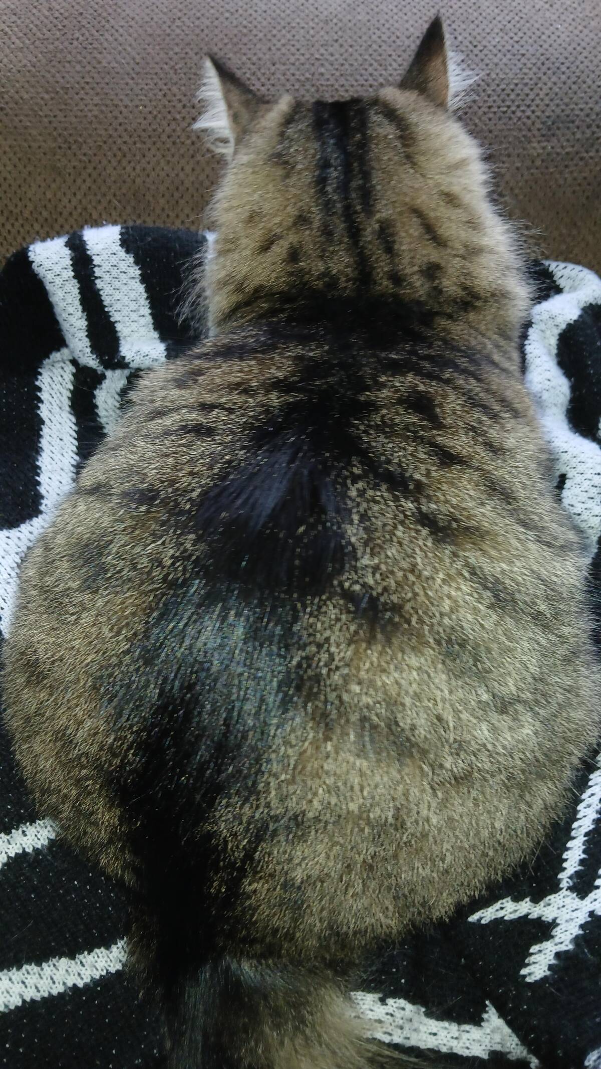 “My cat’s black strip of fur is a different texture to the rest of her fur.”