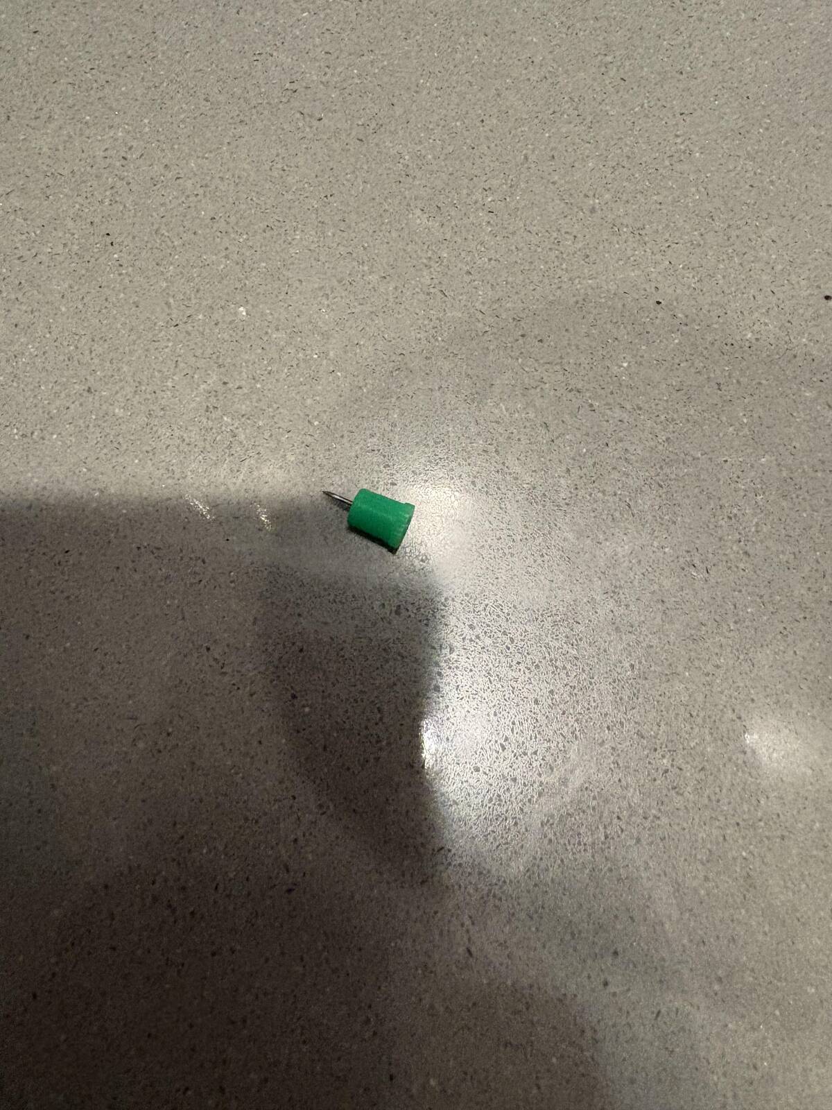 Well, this little green pushpin-looking thing appeared out of nowhere in my kitchen. Is it just a rogue piece of office equipment, or is my kitchen plotting to become a tiny art gallery? Either way, I’ll be on the lookout for the tiny paintings next!