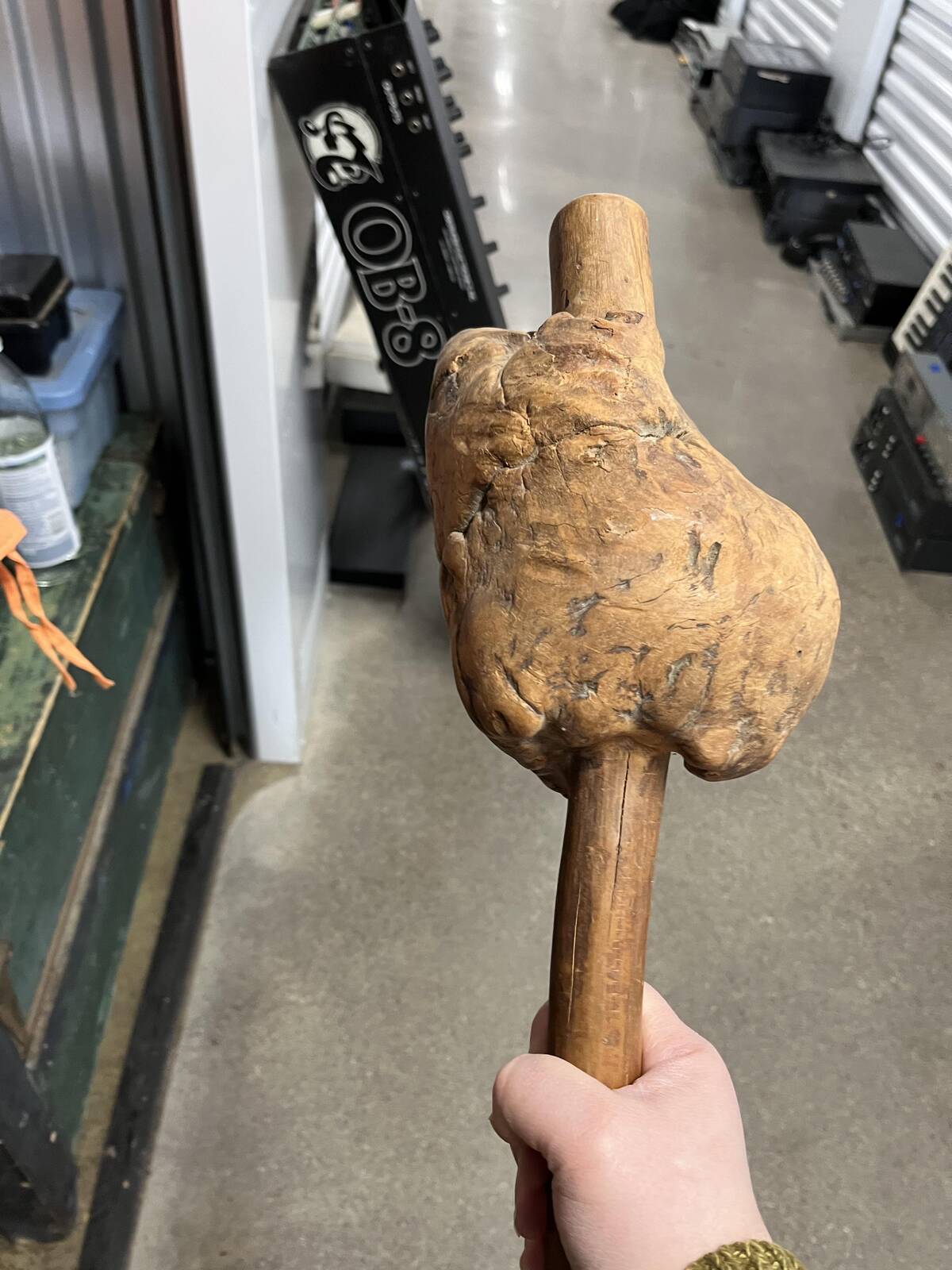 Holding this mystery wooden object, I’m half-convinced I stumbled upon some sort of magical artifact. With one smooth end and one gnarly, rough mass, it’s hard to tell if this belongs in a woodworking shop or was once a wizard’s walking stick. Either way, it feels powerful!