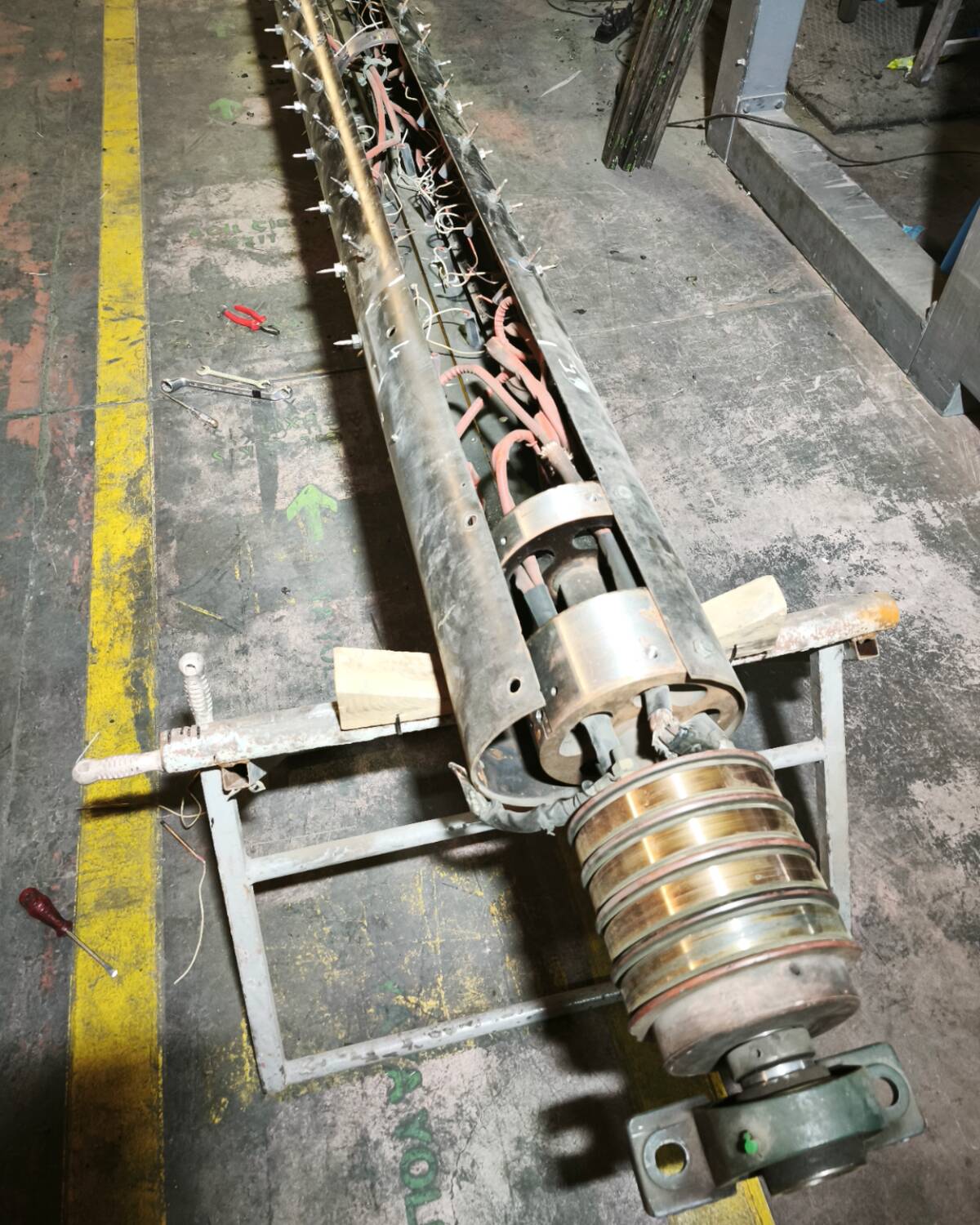 “A steel cylinder, approximately 7″in diameter, about 26 feet long, with metal spikes. It’s so heavy I didn’t get a chance to weigh it.”