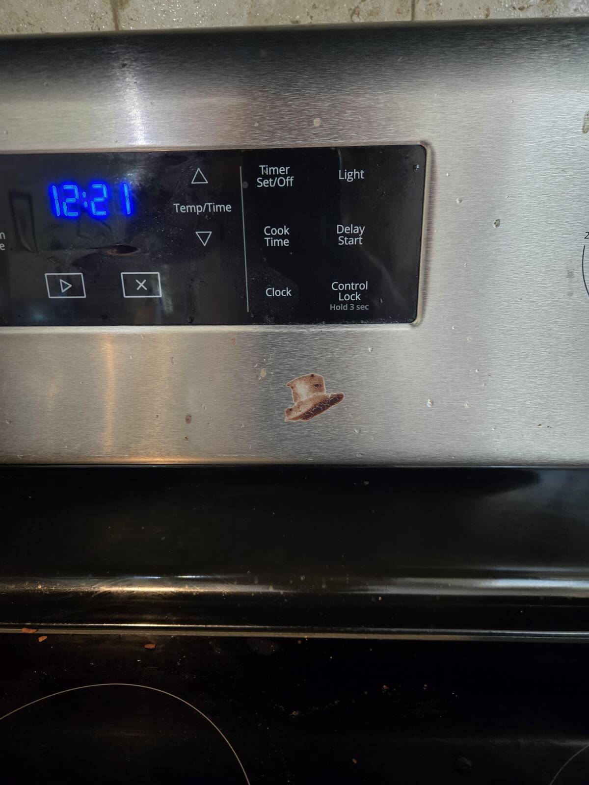 “Was cooking some beans and spilled some. Looks like a very detailed hat.”