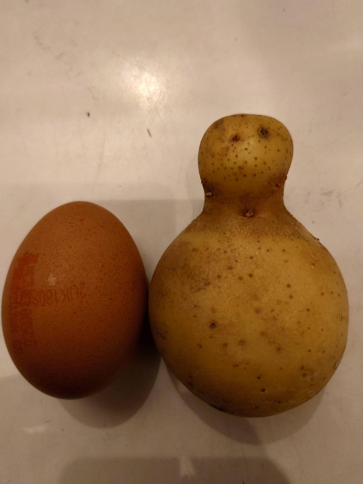 The potatoes have eyes… and apparently, their own sense of style? At least the egg seems unbothered by its new spud friend. If Pixar wants a new cast member for Toy Story, this potato is already halfway there. Egg included for dramatic scale.