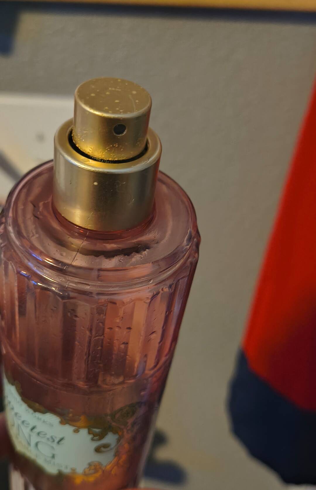 “Sugar crystals growing on the nozzle of my perfume spray”