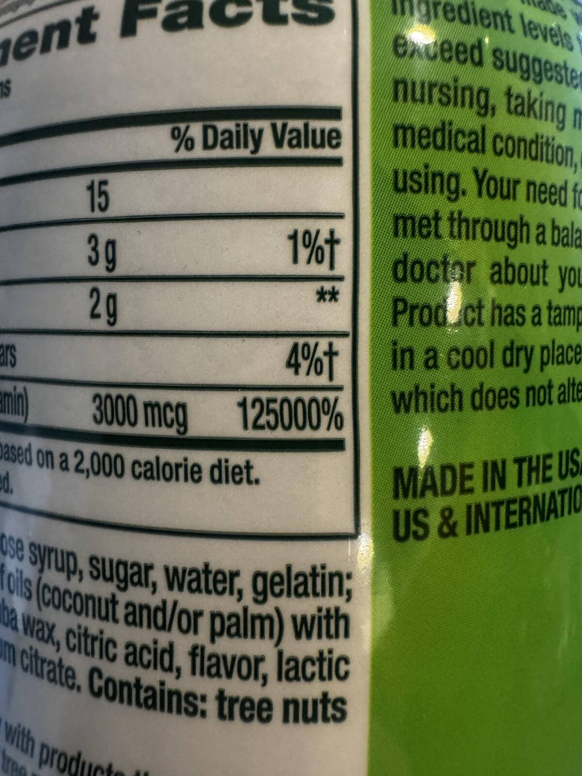 “My B12 supplement has 125000% Daily Value for one serving.”