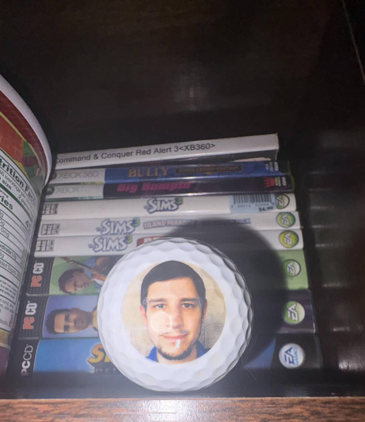 “Golf ball with image of unknown man I found in my backyard”