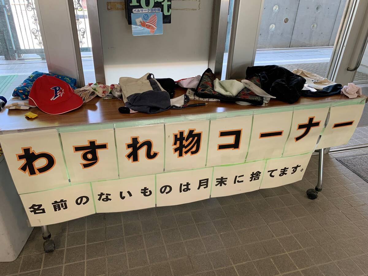 “Lost and found corner at a Japanese elementary school”