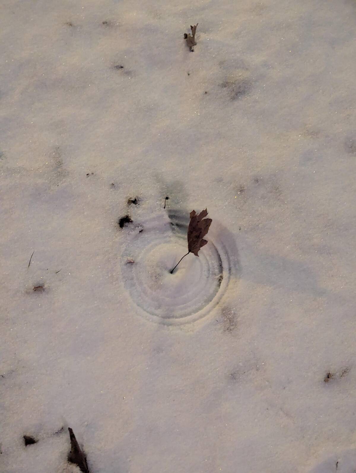 That leaf spinning perfect circles in the snow feels a little magical. Did the wind choreograph this? Nature leaves its own art installations, and I stand impressed (and slightly hypnotized).