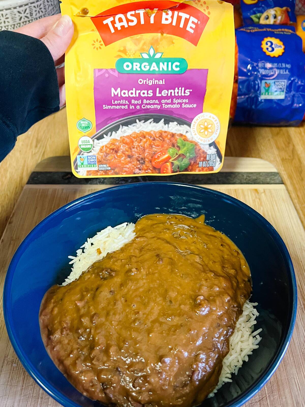 Nothing says ‘gourmet dinner’ quite like the stark contrast between what’s on the box and what’s in the bowl. Bon appétit to us all—sometimes, survival is flavor. This kitchen adventure is definitely an eat-with-your-eyes-closed situation. Who knew lentils could be so artistically abstract?