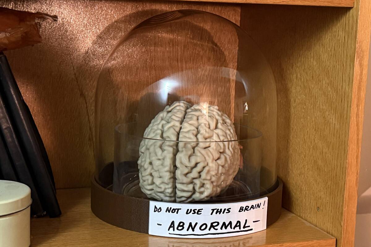 Is this my villain origin story? Having a 3D-printed model of my brain under glass feels both wildly cool and slightly alarming. That ‘ABNORMAL’ sign is just the icing on the mad scientist cake. Not planning to use this brain for any world domination… today.