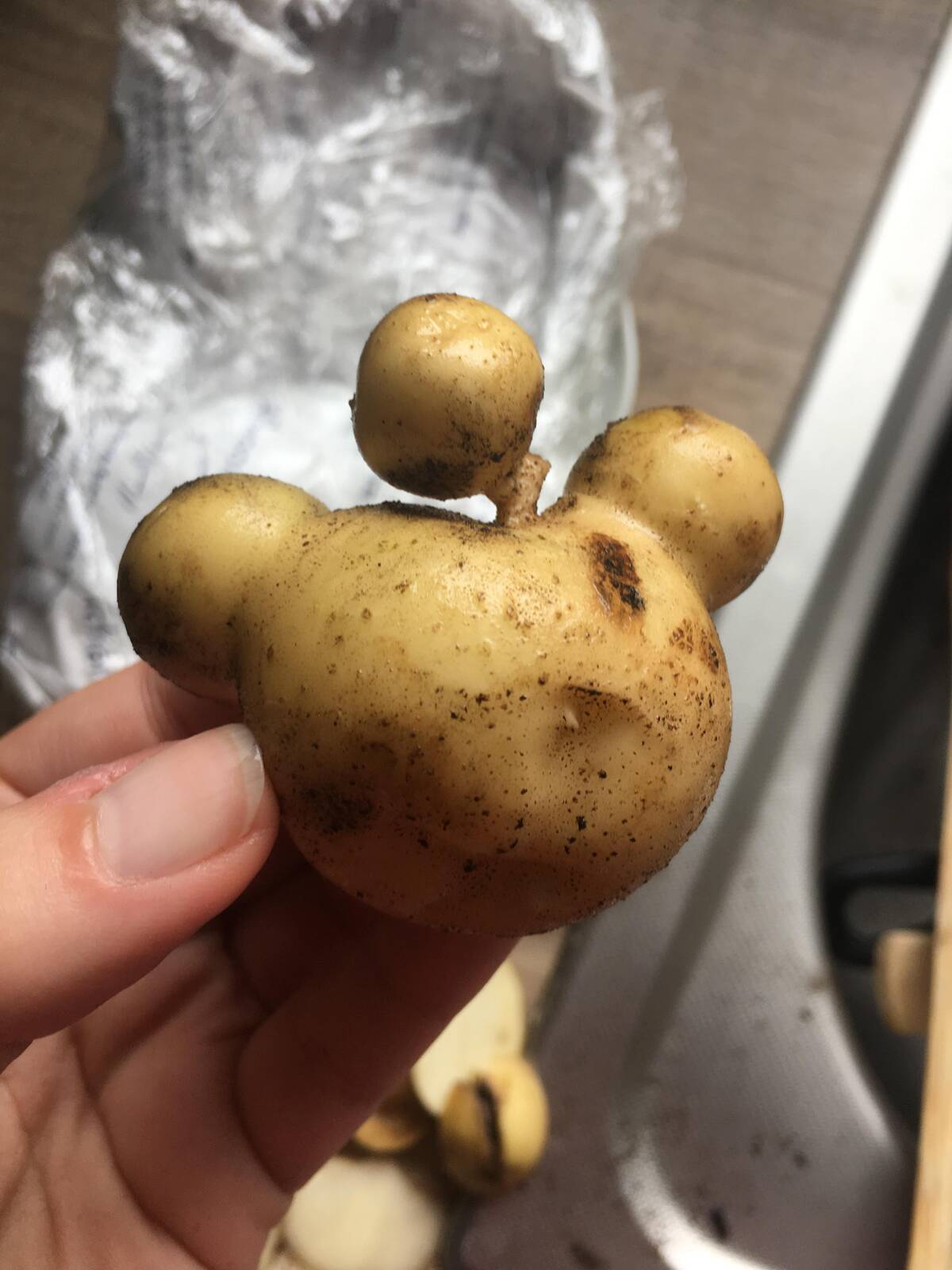 Is it a potato or a cartoon mascot come to life? Honestly, I can’t believe veggies can grow with such meme energy — this thing could have its own subreddit. Homegrown produce coming in clutch with the unexpected cosplay. Dinner and internet jokes all in one.