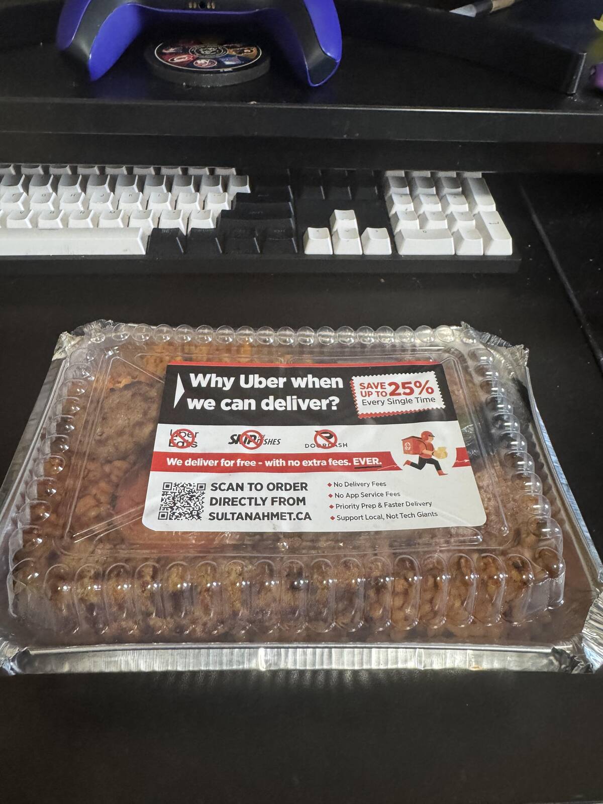 Imagine ordering food for delivery but the packaging practically begs you to ditch the app that brought it. Restaurant rebellion at its finest! Suddenly, I’m feeling guilty for ever clicking ‘order’ on Uber Eats. The sticker has spoken.