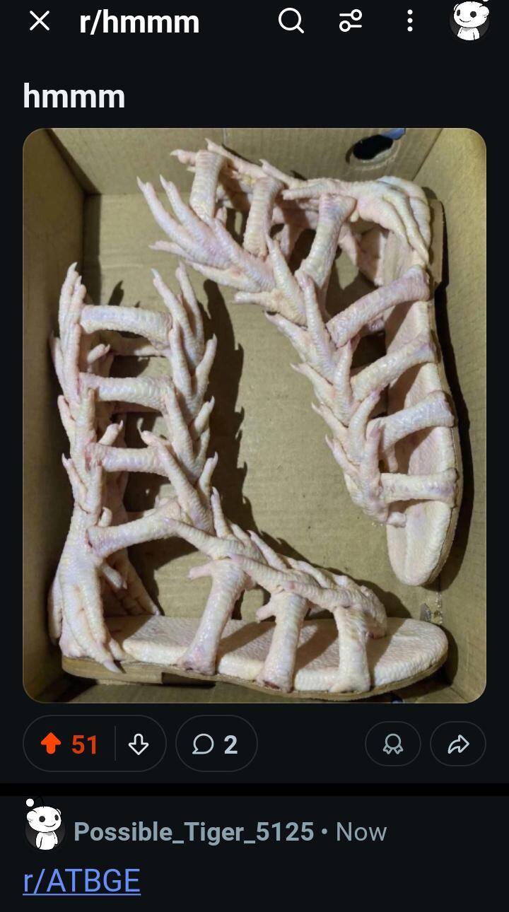 Chicken feet sandals are now a thing and I’m honestly both unready and intrigued. They’re so literal it’s almost genius, but wearing them in public would be an act of pure chaos. I can’t decide if these are a Halloween costume or next year’s hottest runway look. Either way, I respect the boldness.