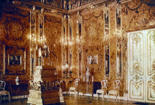 At the conclusion of WWII, one mystery that remained was the fate of the Amber Room. Originally located in the Catherine Palace near St. Petersburg, the chamber was decorated in amber panels with gold leaf mirrors. The Amber Room was ransacked during WWII by an army group of Nazi German and brought to Konigsberg.