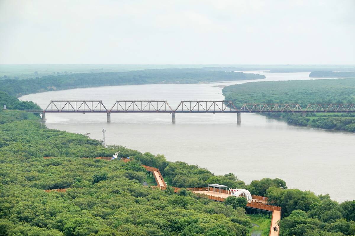 The Russia-North Korea border is tiny, just 11 miles long along the Tumen River. It’s one of the shortest international borders in the world, but still plays a vital trade role and transportation link thanks to its sole railway bridge.