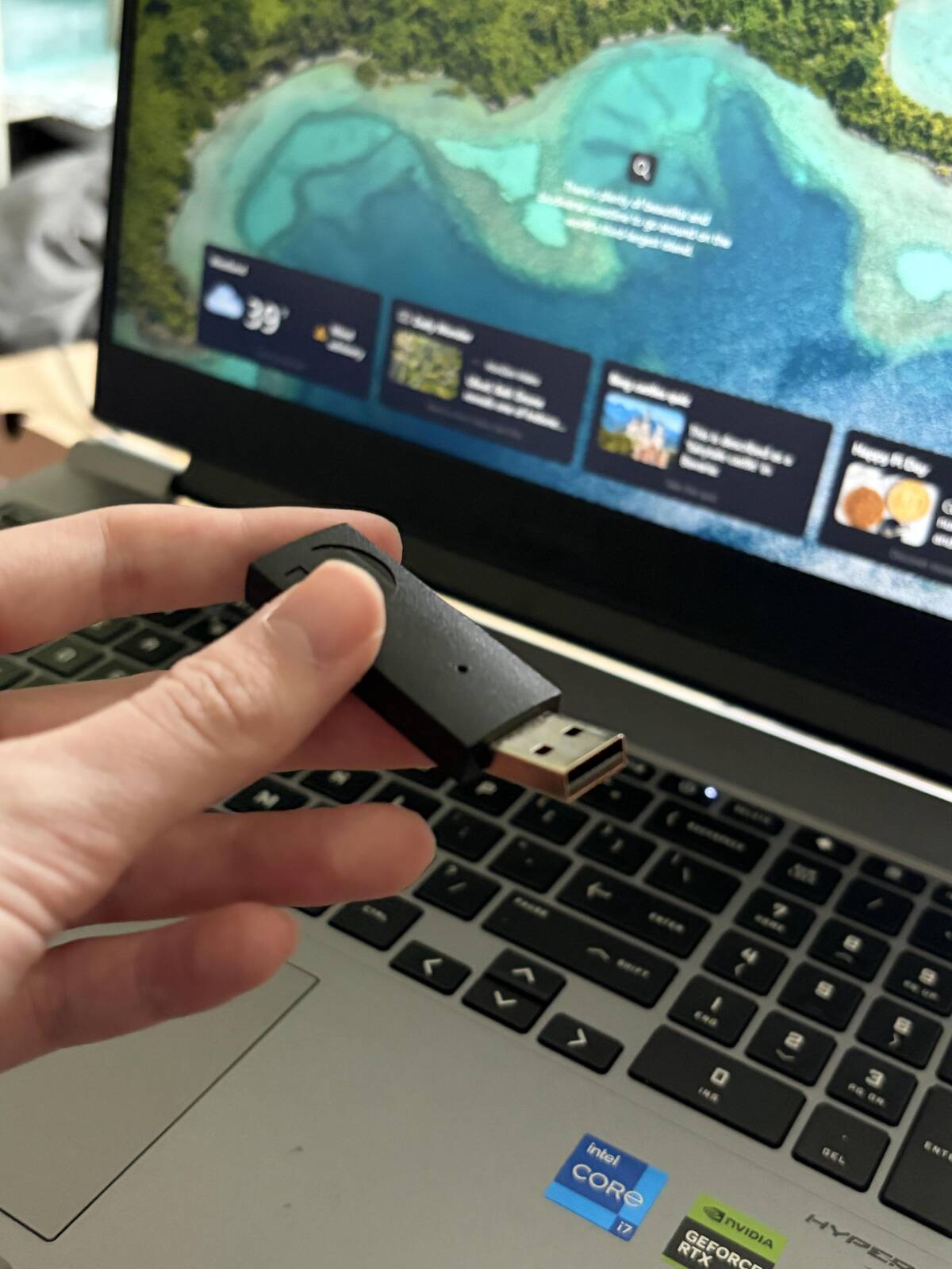 “Computer slipped off the lap desk and broke the bluetooth adapter for my headphones.”