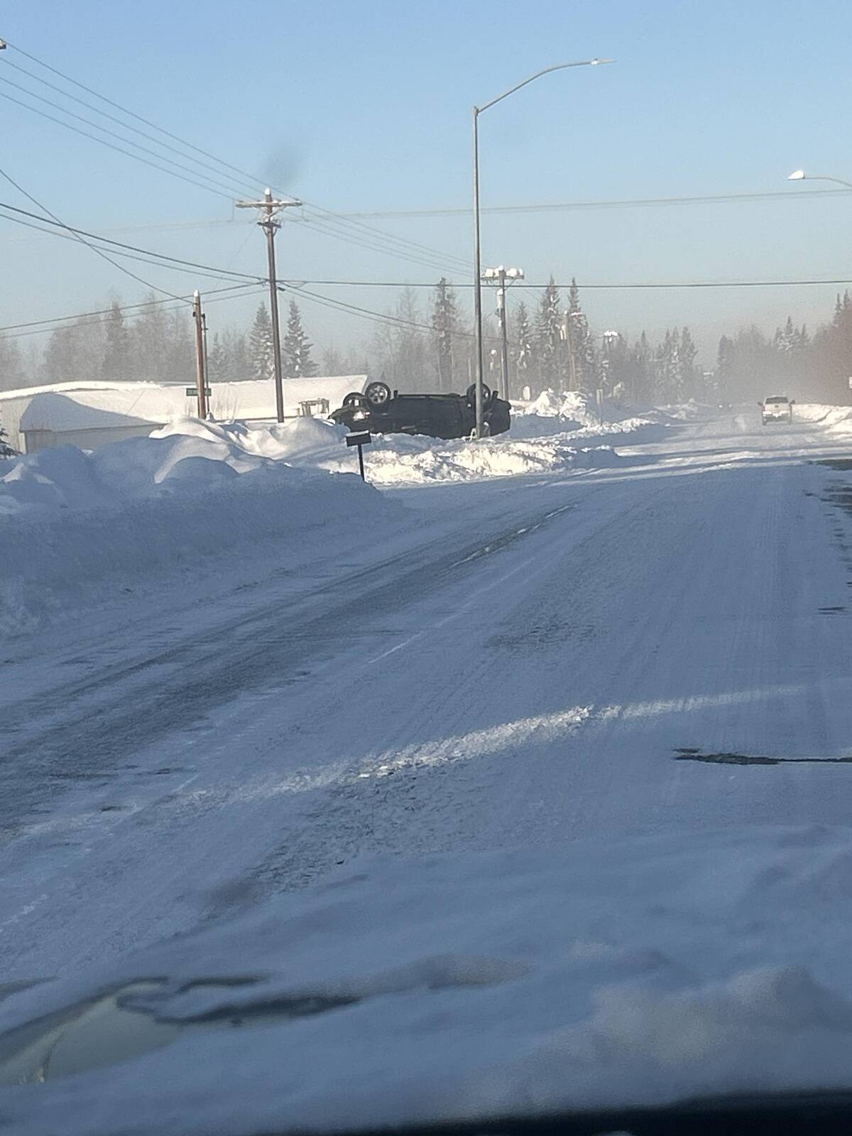 Seeing a car upside-down in a snowbank just makes you want to send an empathetic wave. Winter roads really don’t play around. Hope whoever it was ended up okay—because nobody signs up for that kind of surprise.