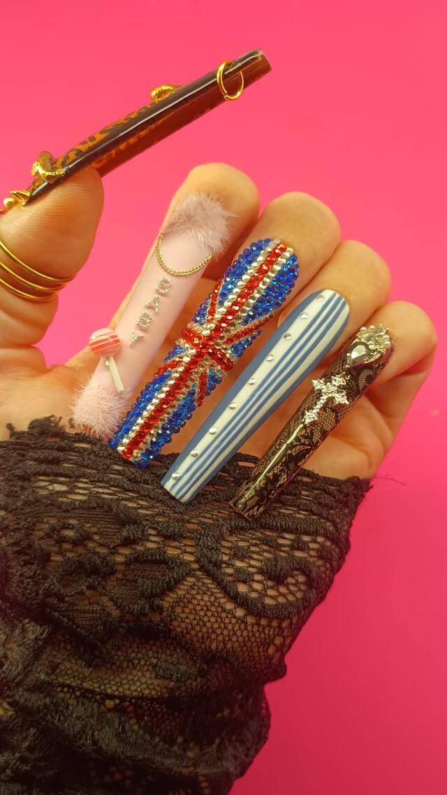 These nails are ready to spice up literally any situation! Equal parts pop culture homage and structural engineering marvel, there’s no mistaking the commitment here. Can you actually function with these? Who cares, they’re iconic.