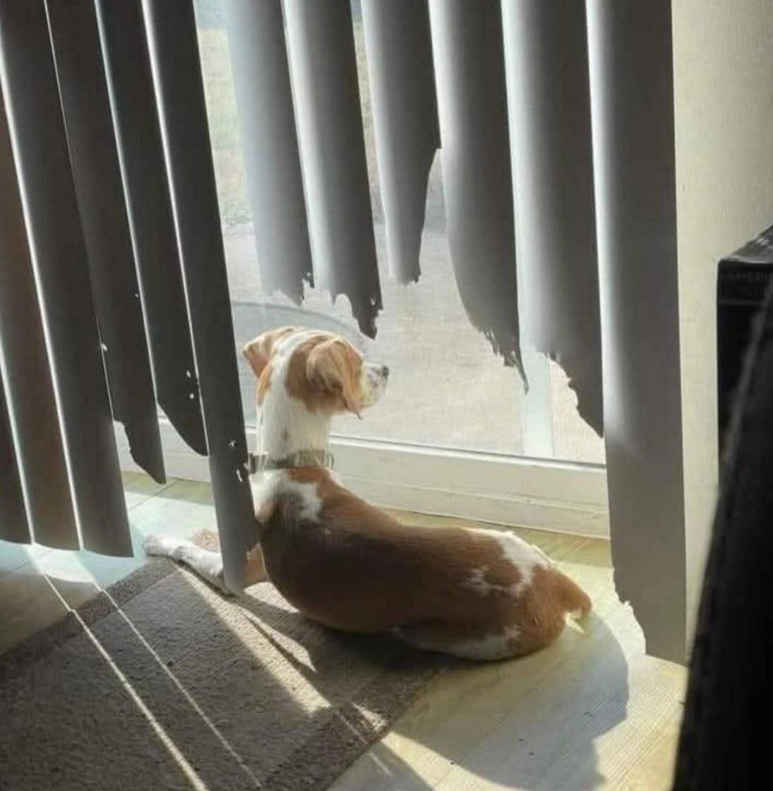 Well, that’s one way to remove what doesn’t make you happy from your life! Can’t help but laugh at the pure logic here: curtains in the way? Just edit them out. There’s a lesson here for all of us: if you don’t like it, chew it up and move on.