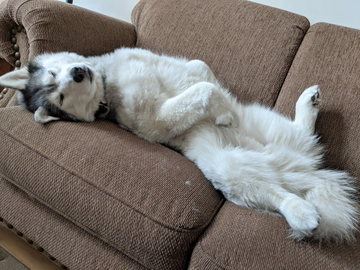“Apparently, Reddit thinks my dog is cute, so here’s a photo of her sleeping like a human.”