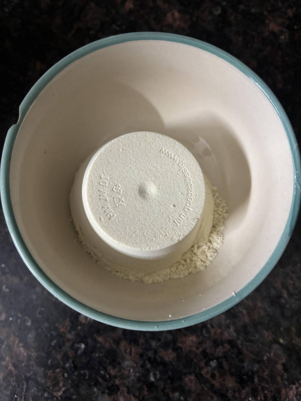 “Accidentally landed my protein scoop perfectly printed with the label.”