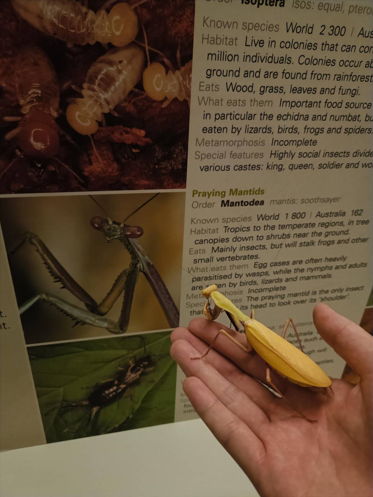 Is this a playdate or an oddly specific museum wish come true? Taking your mantis to see the museum mantis is peak pet-parent energy. Somewhere, a mantis is bragging to its friends about having the best day ever. Best museum visit ever awarded.