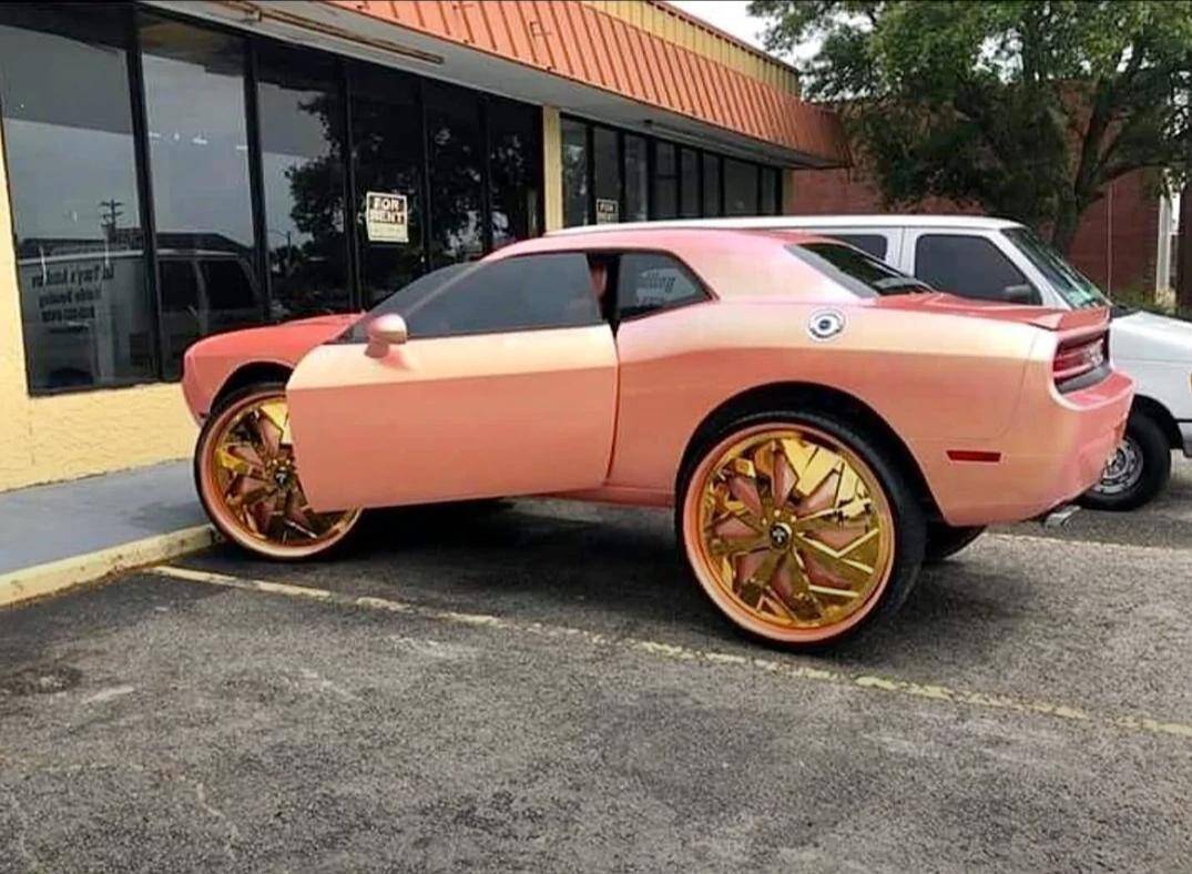 It’s a car, I think. But why is it standing so tall? Are those rims made of actual gold? I want to look away but I just keep finding more things to process.