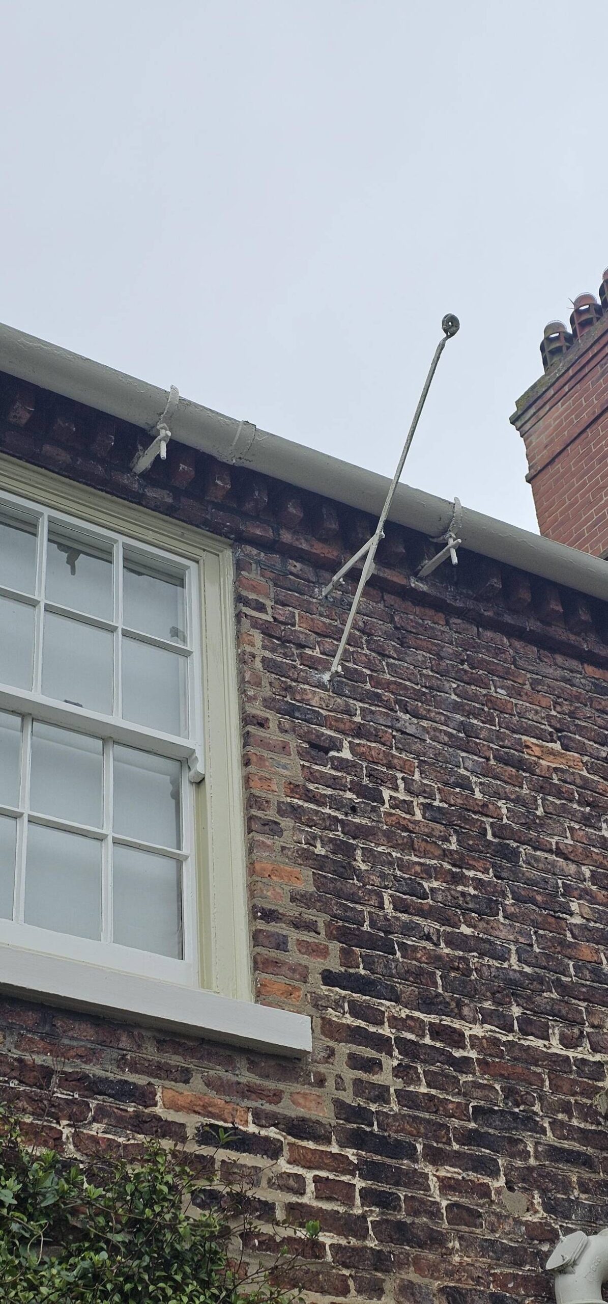 “Strange metal rod attached at two points to an old house, about 1 metre long with a round thing at the top.”