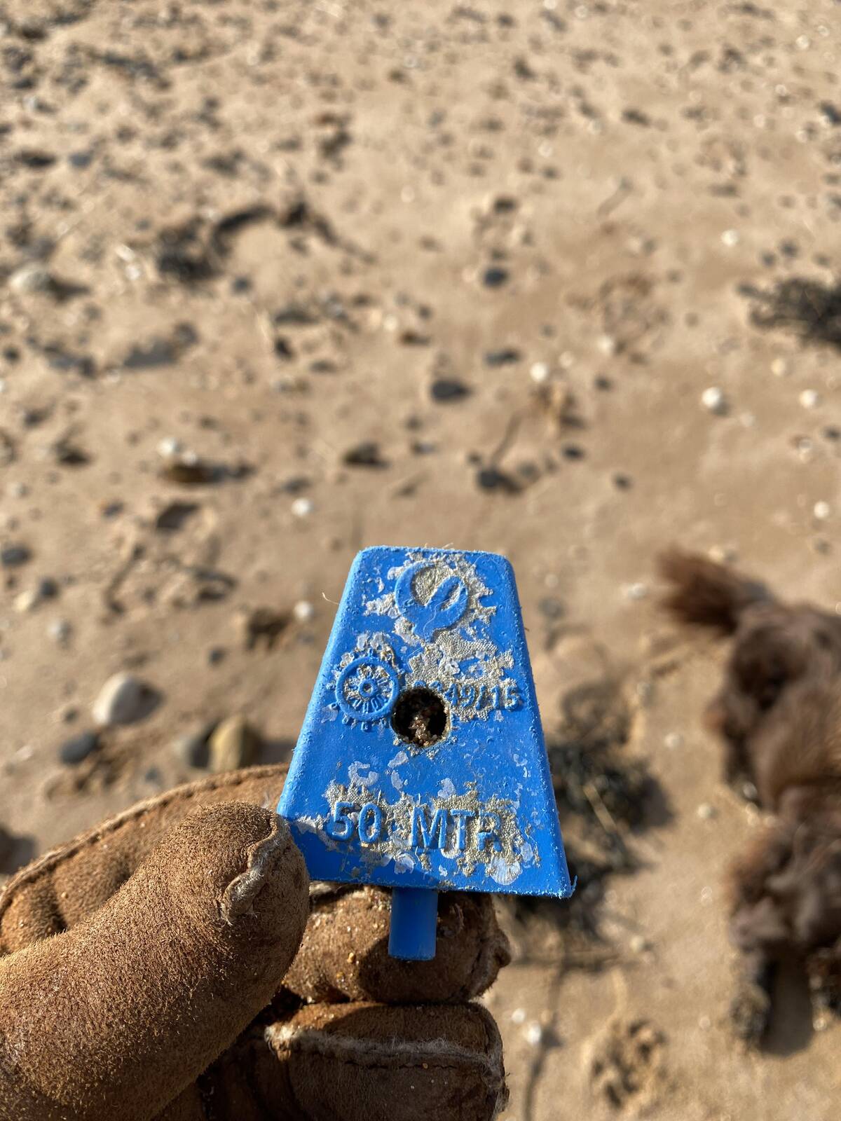 “Found on the beach near Brora Scotland. Blue plastic triangular shaped with 50MTR stamped on it. Second one I’ve found this week.”