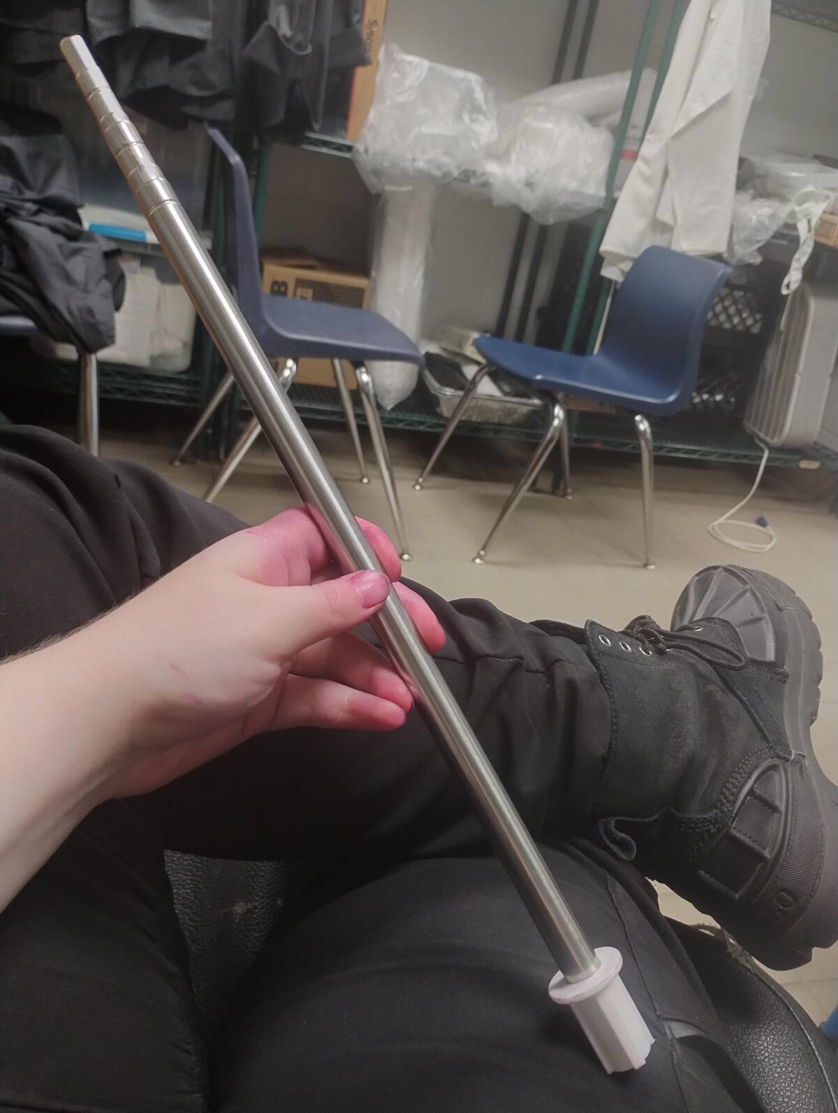 An extendable metal rod found in a culinary classroom? Does someone use this to reach the top shelf, or is there a gourmet purpose I’m missing? Either way, I’m pretty sure I’d poke myself before figuring it out. In reality, it’s a cake support for tall cakes, helping to keep layers stable and perfectly aligned.