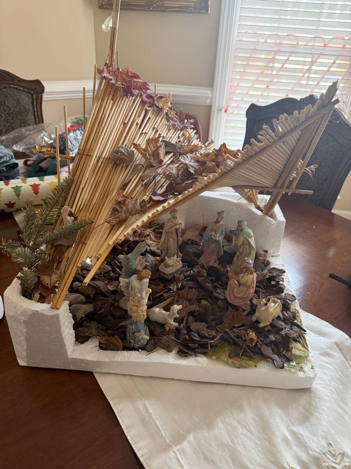 “Father-in-law (79), retired civil engineer, put together a nativity set using a roof design he always dreamed of building.”