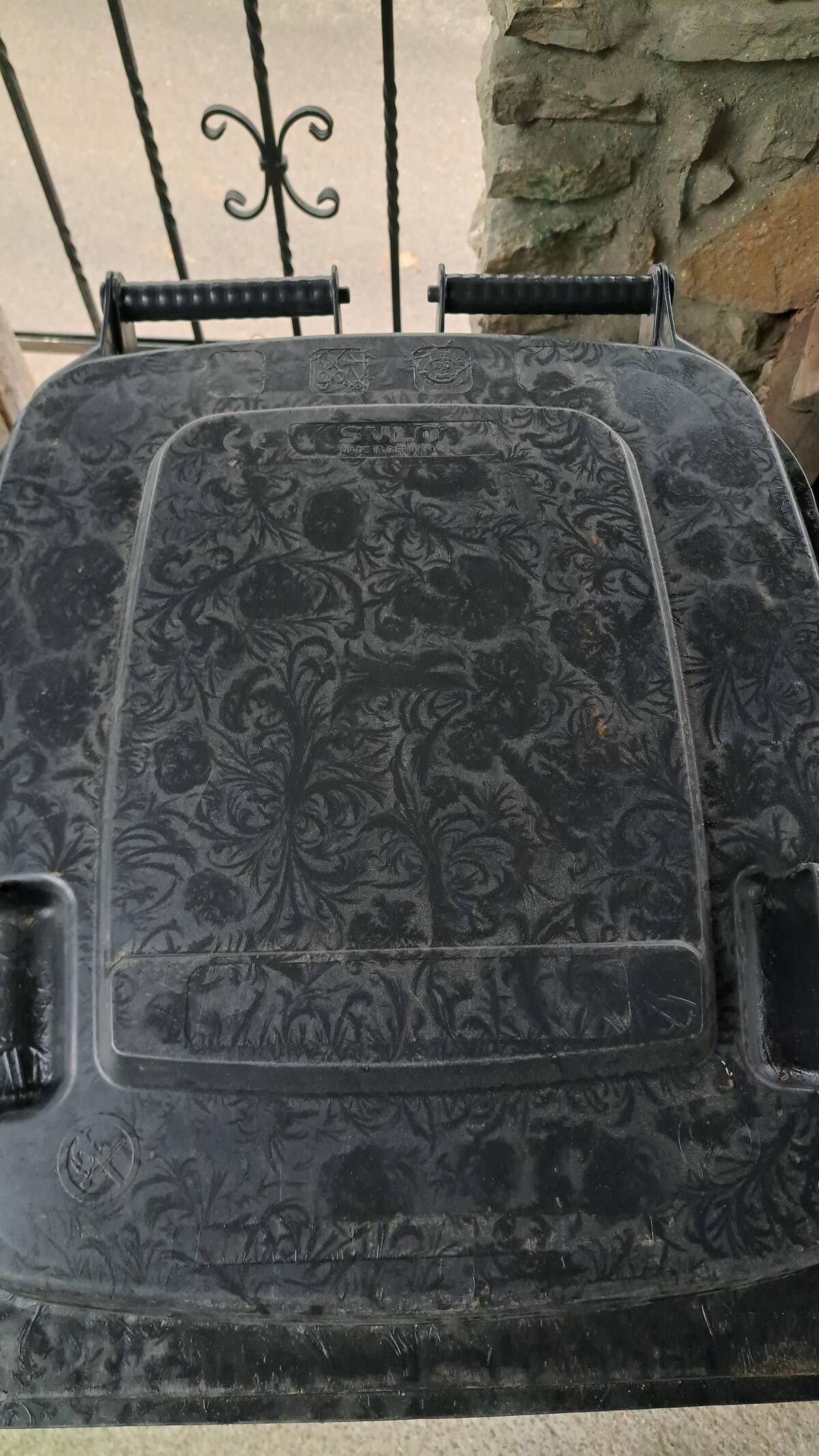 Whoa, was there a fancy party and nobody told me? This frost pattern makes the trash can look like it’s wearing Victorian wallpaper—absolutely too classy for garbage! Nature really just decided to flex on us today.