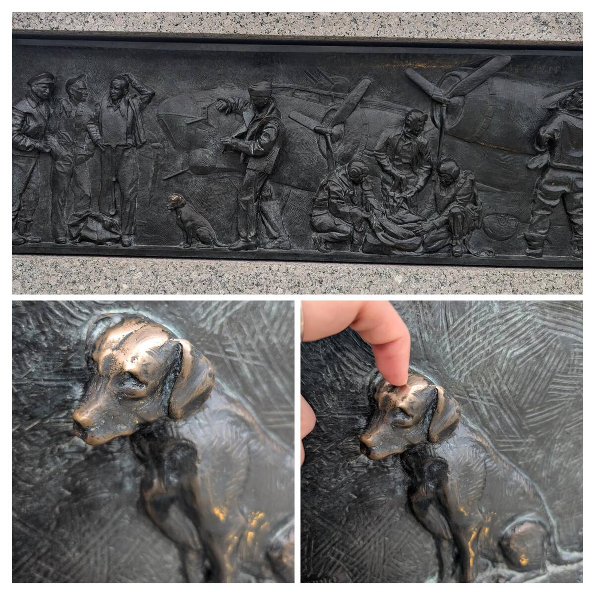 “I visited the WW2 Memorial at DC and noticed on one bronze panel that petina on the dog’s head was worn away from constantly being pet over the decades.”