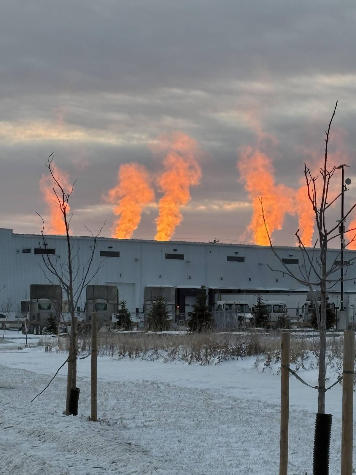 Whoa, I almost thought the building was on fire for a second! Turns out it’s just warm morning sunlight getting creative in the chilly air—Mother Nature’s optical illusions at it again.
