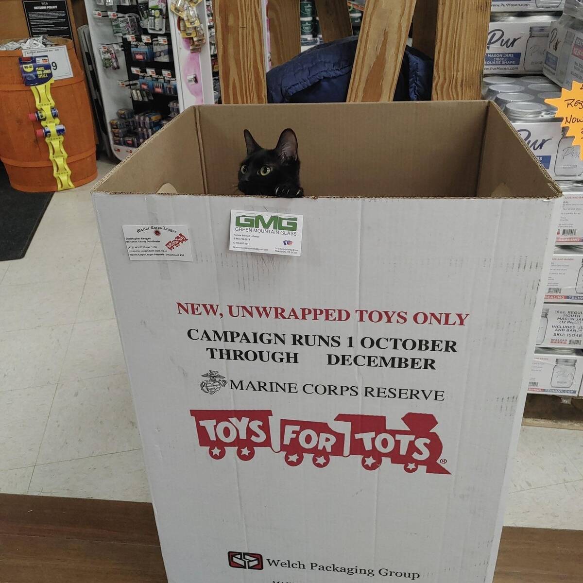 Inventory looks intense—but not as intense as that gaze. If you need a final sales push, just add a well-placed purr. ‘Pur-veyor’ is the kind of department head every store needs. How can anyone resist buying more?