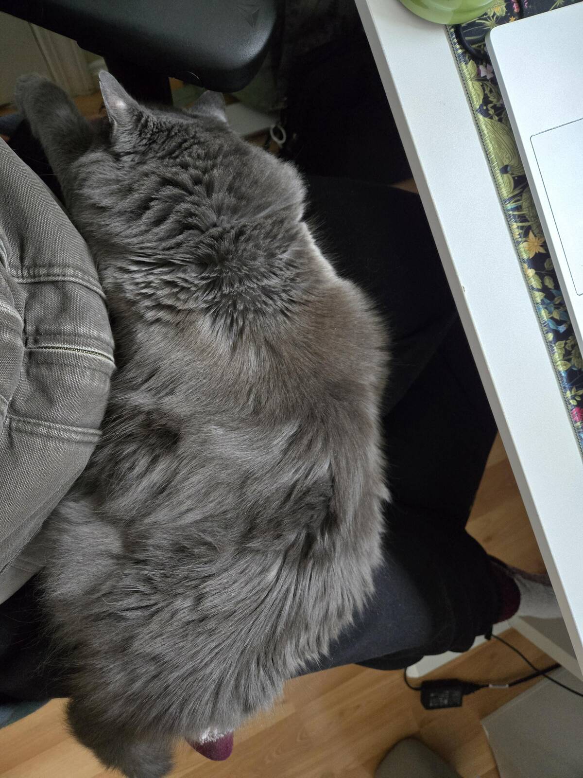 Ah yes, the classic lap warmer, purr-enabled and guaranteed to boost happiness. Productivity may go down, but contentment definitely goes up. 10/10 would recommend this service to everyone. Who needs heated seats when you have this?