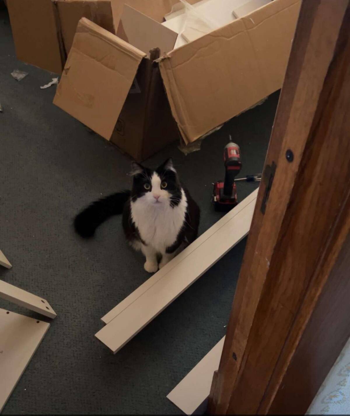 DIY projects always go smoother with some help, however slow the pace. This furry assistant offers moral support and the occasional judgmental glare. I’m giving 10/10 for enthusiasm, and maybe a 2/10 for speed!
