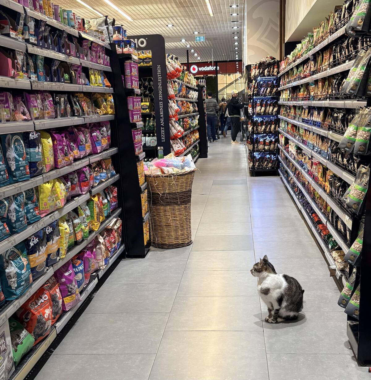Whoa, this cat is clearly on a mission. If you’re planning to slip by and grab some treats, you better announce yourself. I love how dedicated they look. Quality control in the pet food aisle is obviously very serious work!