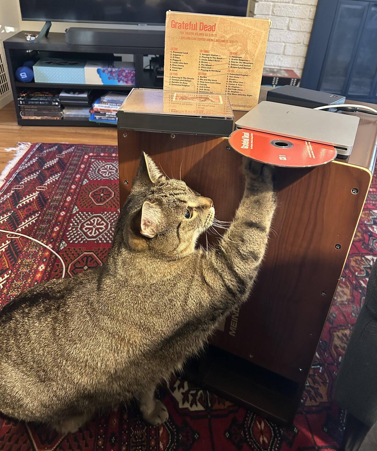 Dropping the bass and spinning the tracks—if you can get past the whiskers. This deejay runs the best (catnip) parties. I’d stay for the tunes, but mostly for the furry entertainment.