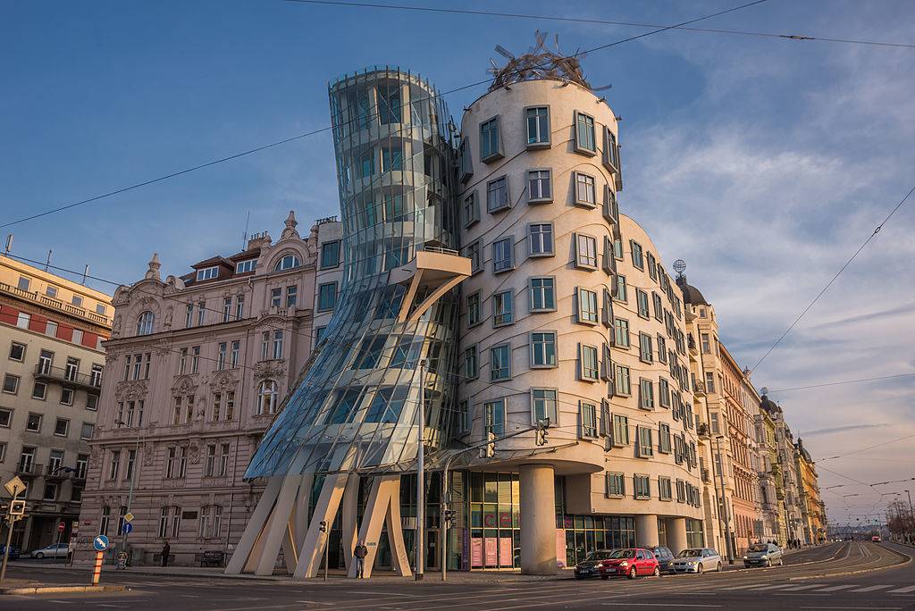 The Nationale-Nederlanden building in Prague, Czech Republic is famously known as The Dancing House due to its unique design. The curved, concave part of the building gives the illusion that the building is either moving or collapsing in.