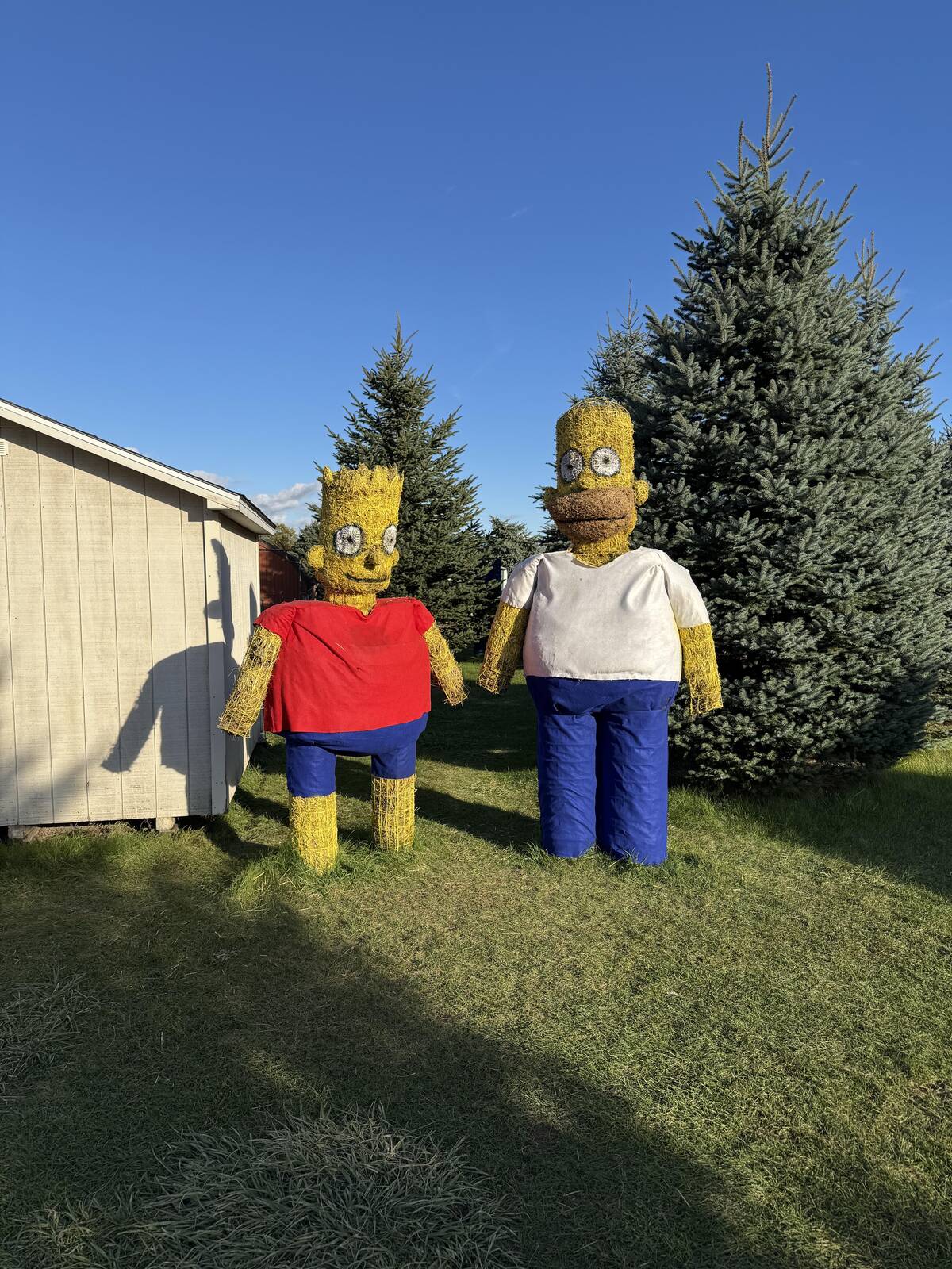 Nothing says ‘homemade fan art’ quite like these two haystack legends. The resemblance might not be exact, but the spirit is definitely there! Somewhere, Matt Groening is both honored and mildly terrified. Gotta love small town creativity.