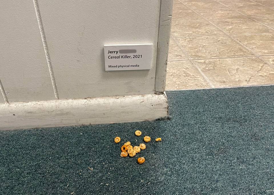 So when this person’s colleague kept spilling his cereal on the floor each morning, he decided to turn it into a truly breathtaking work of art. Presenting: “Jerry the Cereal Killer.”