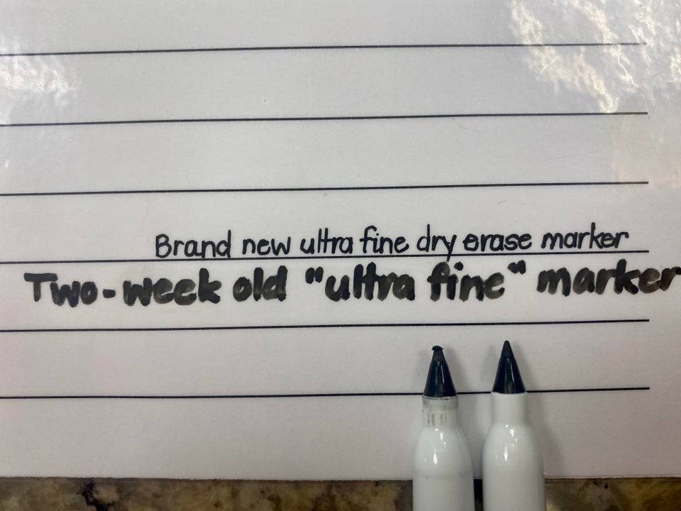 This employee is fed up with coworkers using their “ultra fine” dry-erase markers and turning them into “ultra dull” dry-erase markers.