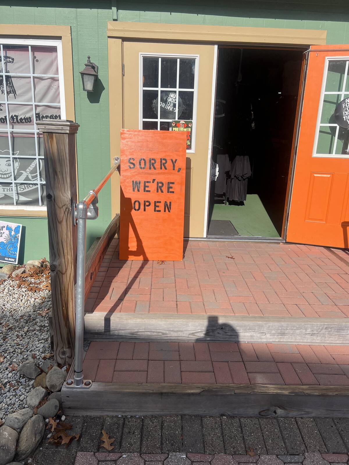 ‘Sorry, we’re open’ perfectly captures the energy of Monday mornings or, honestly, any day ending in ‘y’. Whoever put this out front knows their customer base—and probably their coworkers, too.