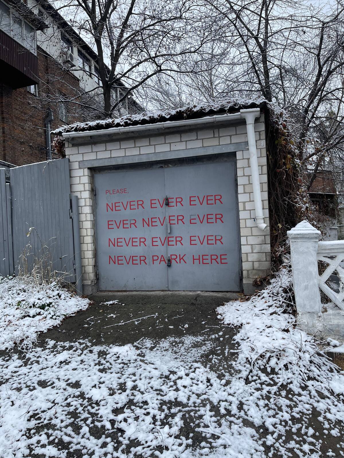 If you’ve ever second-guessed where to park, this shed has some strong feelings about it. The level of emphasis makes you wonder who broke the rules—and what happened next.