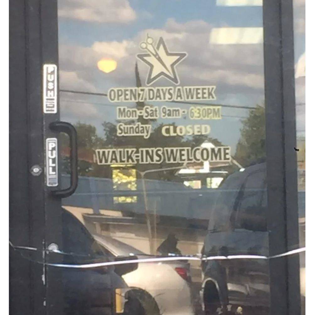 This sign says that this hair salon is open seven days a week, but then it also says that it’s closed on Sundays.