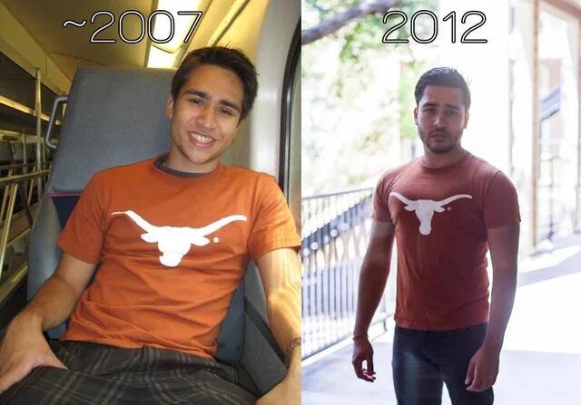 This graduate posted a comparison photo of himself wearing the same t-shirt — one image taken during freshman year, and the other taken post-graduation.