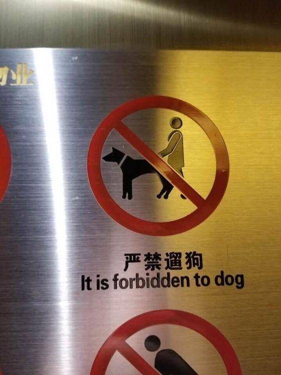 Chinese-to-English signs rarely fail to entertain, and this one’s no exception. “It is forbidden to dog”—the rule is clear, but the meaning? Totally baffling. Now, every time I walk a dog, I can’t help but wonder: Am I allowed? Am I breaking the law?