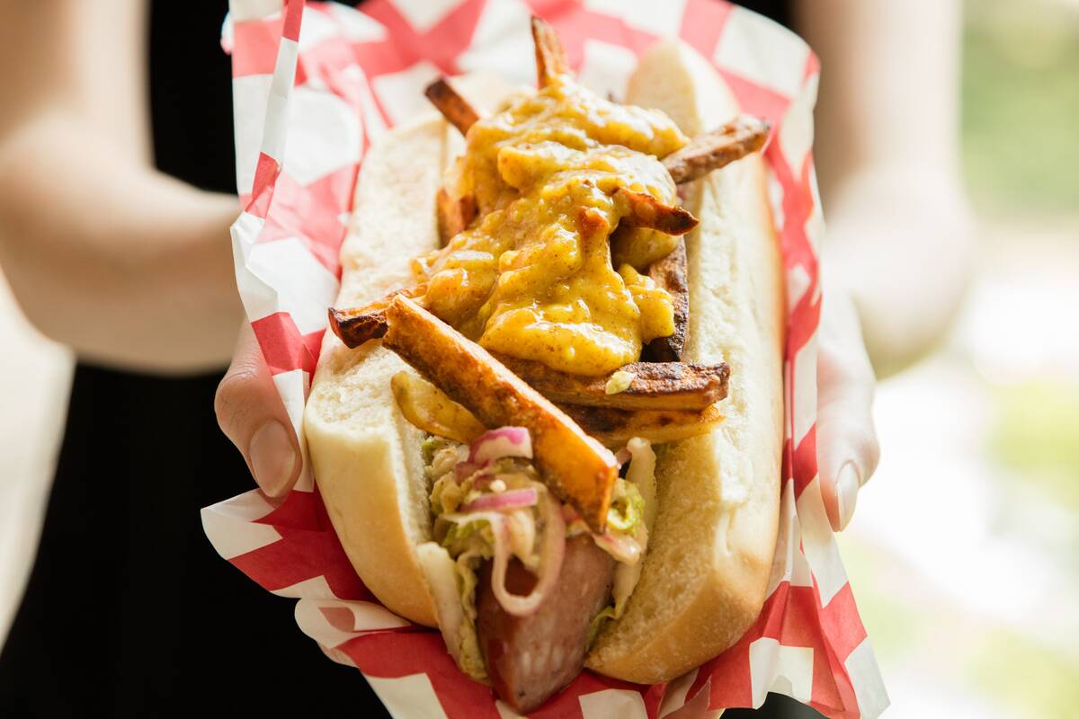 According to This Is Cleveland, the Polish sausage is combined with a messy mixture of coleslaw, barbecue sauce, and fries that’s typically served in a hot dog bun. It may look a little strange, but Ohio residents swear by it.