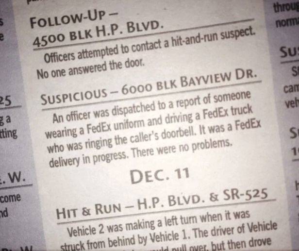 Some people have too much time on their hands. Why would someone think a person in a FedEx jacket is doing something suspicious by delivering a package?